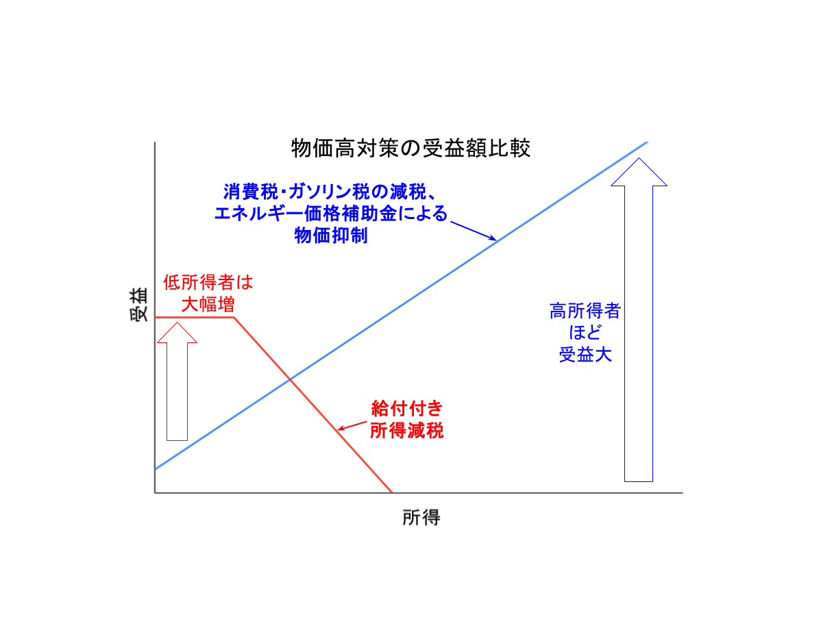 → 低所得者への給付付き所得税減税、児童手当等の弱者支援を増額
