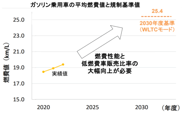 企業平均燃費規制とは、メーカーごとに各車種の燃費値の販売台数による加重平均値を規制する制度で、8年間で30%以上の改善が求められる非常に厳しい基準です。未達成では罰金があり、企業イメージも低下します。